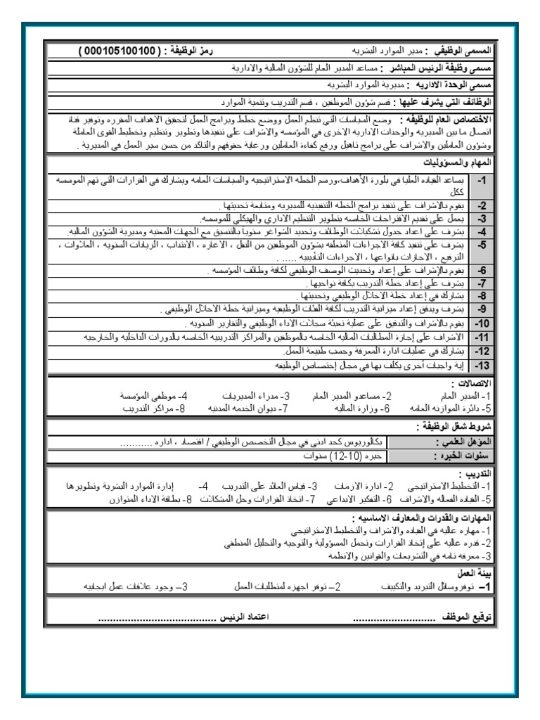 الإدارة العربية حمل مجانا 700 بطاقة وصف وظيفي ل700 فيسبوك
